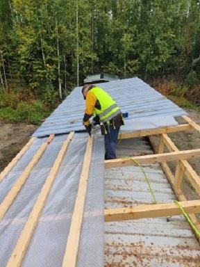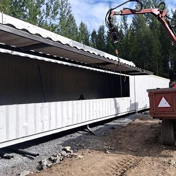 9.3.2025 kontit hilattiin kaivinkoneen avustuksella ampumakatoksen takaa lähemmäs lopullista sijoituspaikkaa. 13.3.2025 kontit nostettiin perustuksille nosturiautolla. Ensimmäinen nosturiauto ei päässyt paikalle vaan luisti viimeisessä mäessä kyljelleen ojaan. Henkilövahingoilta onneksi vältyttiin ja saimme toisen nosturiauton paikalle hoitamaan nostot suunnitelman mukaan.