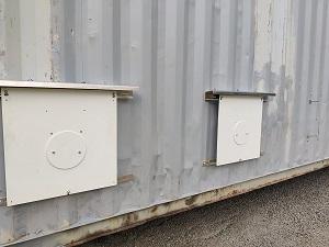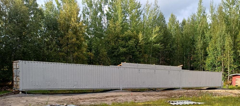 27.2.2025 saatiin myös merikontit Raumalta paikan päälle odottamaan työstämistä. Merikontteihin tehdään aukotukset taululaitteita varten ja poistetaan päätyjä niiden yhteen liittämistä varten.